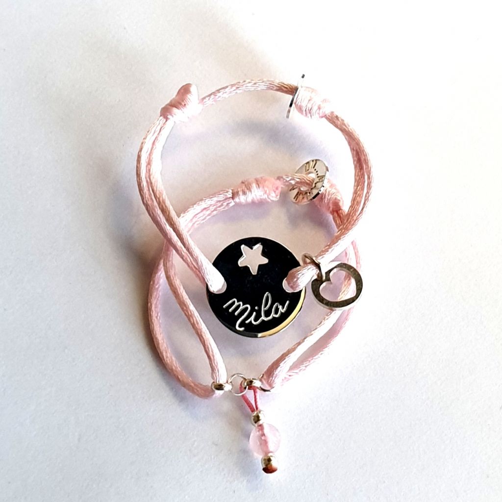 Bracelet ajustable grace aux noeuds coulissants. Bracelet livré dans un sachet en organza Maman m'a dit..., pochette cadeau et chamoisine en option