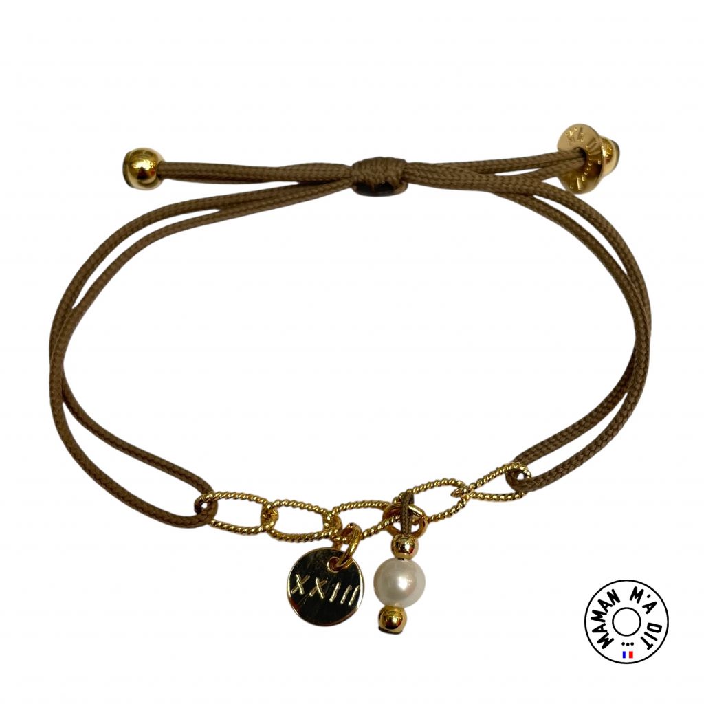 Bracelet mini médailles ronde et pompon perle de culture sur chaîne maillons torsades .